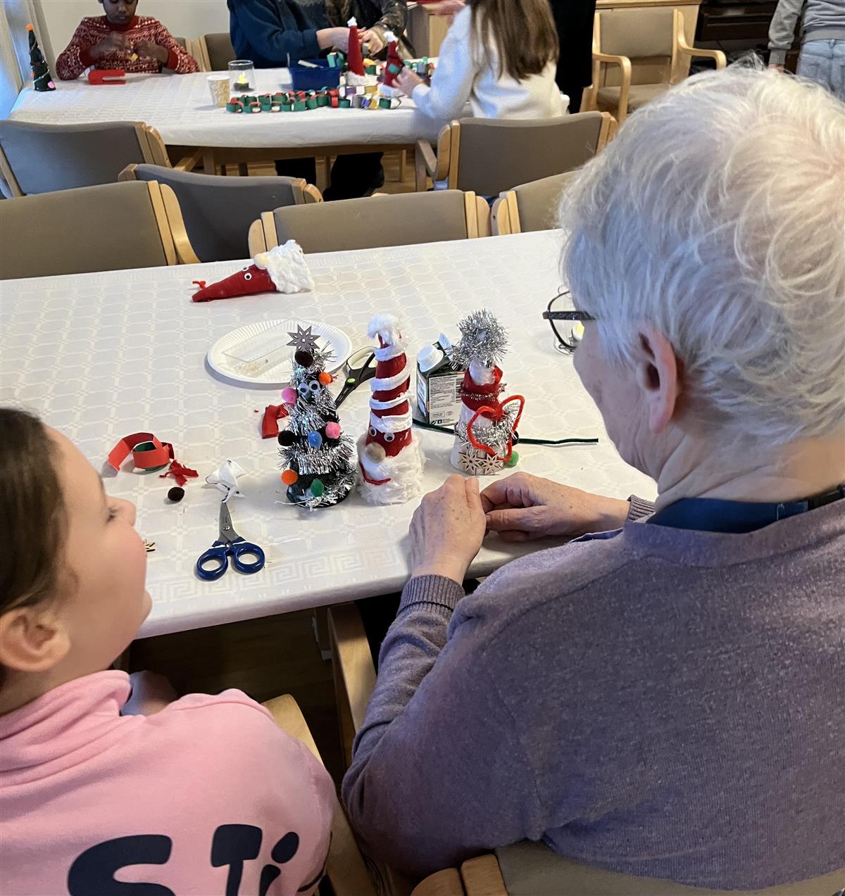 Juleverkstedet ble arrangert for beboerne, og vi inviterte 4. klassingene fra Selfors barneskole til å bli med. Det ble et møte mellom generasjoner som overgikk alle forventninger.