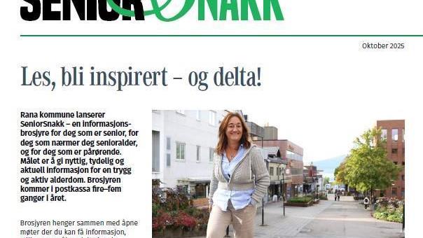 Nå kommer SeniorSnakk i postkassa di I uke 42 distribueres første utgave av SeniorSnakk til alle husstander i Rana. Informasjonsbrosjyren fra helse og mestring er en ny kanal ut mot innby...