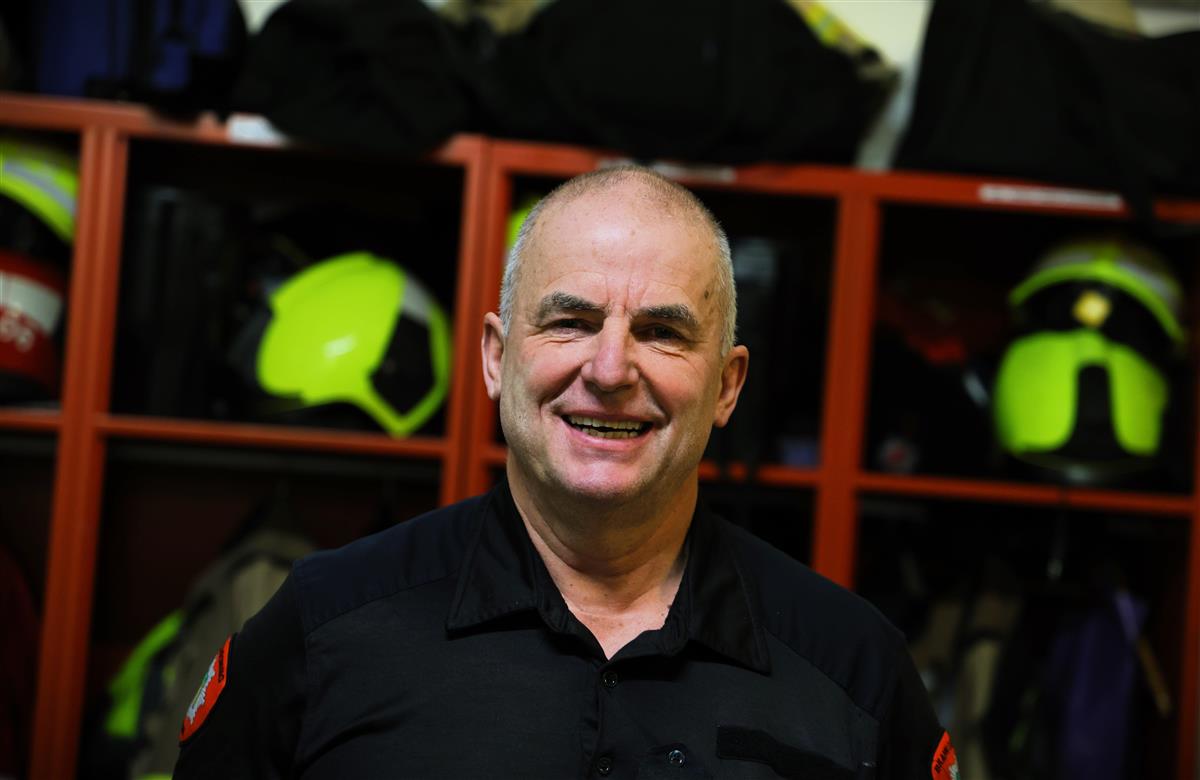 I sentrum, i et blått murbygg, ligger brannstasjonen. Vaktlag c, bestående av seks personer, er de som skal på jobb denne julaften. Ole Asbjørn Solli (58) er utrykningsleder for laget.