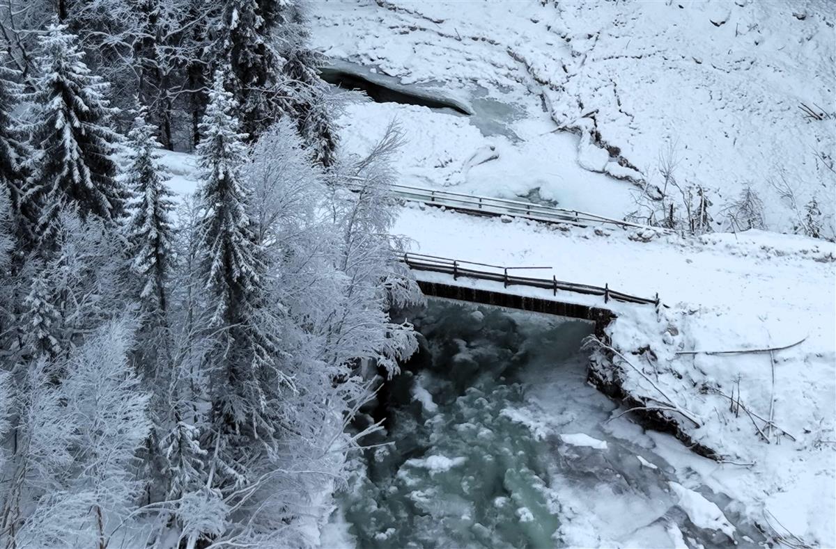 Svartisdalveien ble stengt da det gikk et isras ved Sagrabben bro, 3. januar. Nå er brua godkjent og veien åpen igjen.