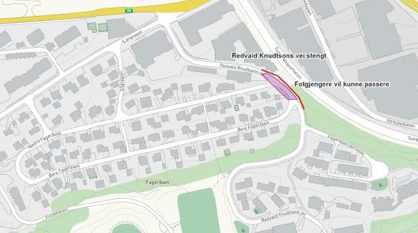 Informasjon om veistengning Redvald Knudtsons vei grunnet anleggsarbeider: